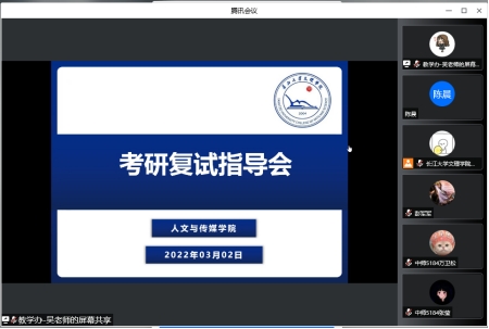 本网讯(通讯员 吴云)2022年3月2日,公司线上召开了2018级员工考研复试指导会。本次会议由人文与传媒公司经理罗勋章教授主讲,党总支副书记张曦、2018级辅导员以及考研学子参加了本次会议。会议由教学办吴云老师主持。