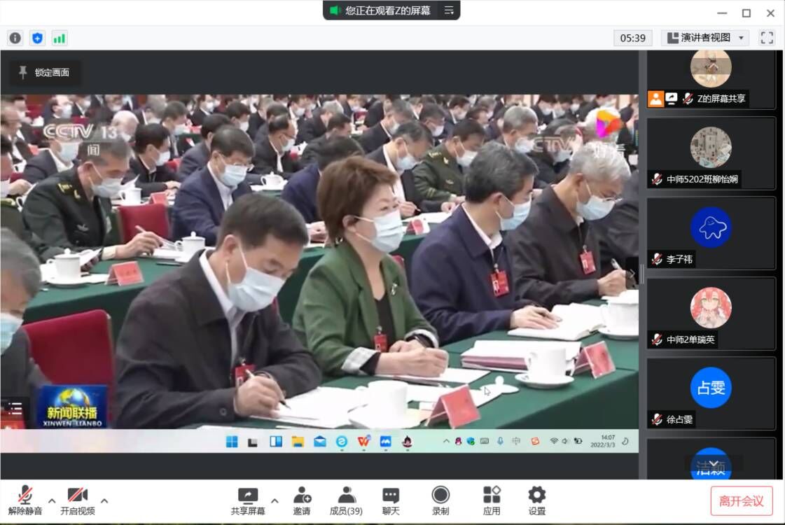 本次团课由各班团支书带领同学们观看习近平总书记在中央工作会议上的讲话视频。习近平总书记在讲话中高度评价了人民代表大会制度,强调人民代表大会制度是符合我国国情和实际的,体现社会主义国家性质、保证人民当家作主、保障实现中华民族伟大复兴的好制度。习近平总书记也深刻总结了关于人大制度的新理念新思想新要求,提出六个必须坚持,还为坚持和完善人大制度,加强和改进新时代人大工作指明了方向。观看过程中,各班同学积极参与,纷纷连麦发表自己的理解和看法。