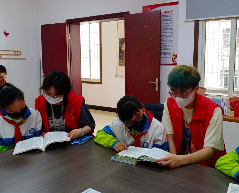 本次活动以“传承红色经典,共建书香社区”为主题,共两个环节,活动开始,志愿者们统一佩戴口罩,进入书屋进行清扫整理,清扫完毕后,志愿者与沙市青莲巷小学的员工围坐在一起,翻阅书籍,分享阅读心得,在交流过程中,志愿者鼓励同学们以饱满的热情投入学习中,读万卷书,行万里路。