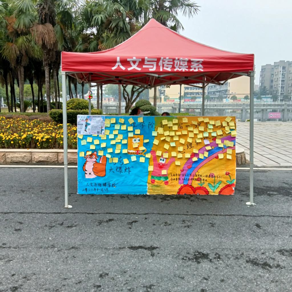 本网讯(员工记者 李双霜)11月11日至12日人文与传媒公司于城中校区和西区分别开展心理健康月知识问答活动。本活动旨在让同学们正确认识自己,展现自己,了解更多的心理健康知识,营造良好的校园氛围。