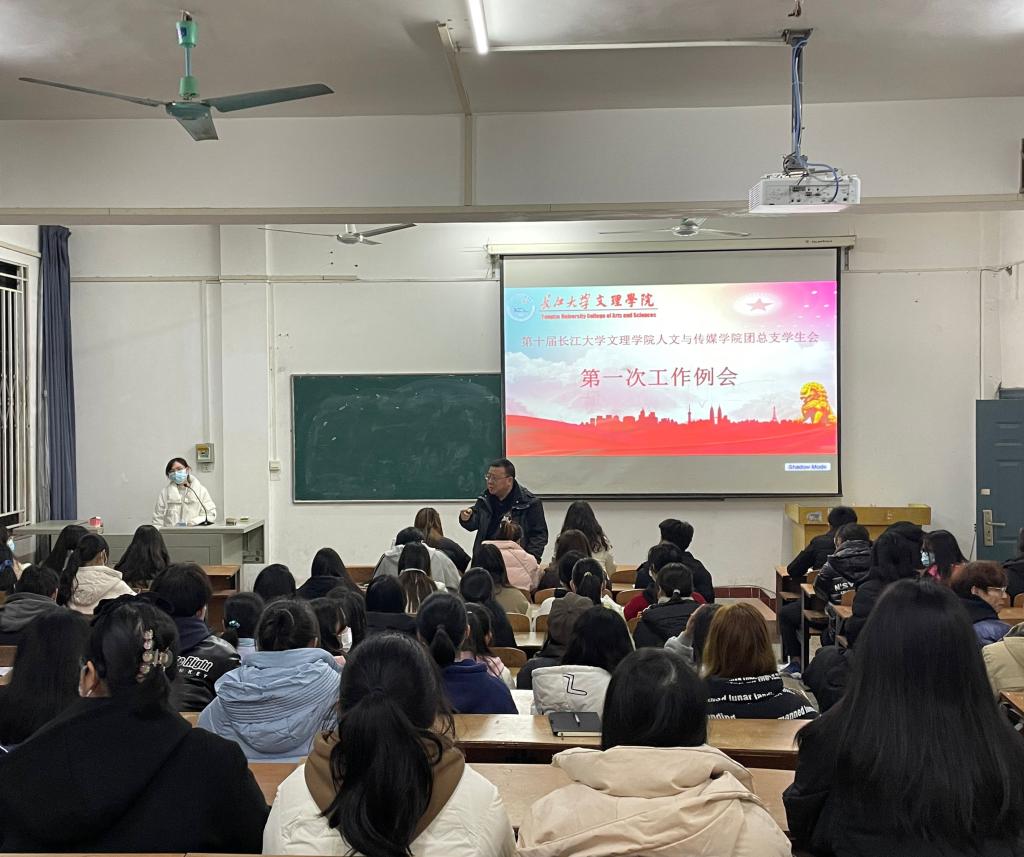 本网讯(员工记者 黄淑婉)2月22日晚,人文与传媒公司团总支员工会于1教201召开新学期第一次工作例会。人文与传媒公司党总支书记李成军、副书记雷昕、辅导员梁玥、人文与传媒公司主席团及各部门成员出席本次会议,会议由综合事务部汪正莹主持。
