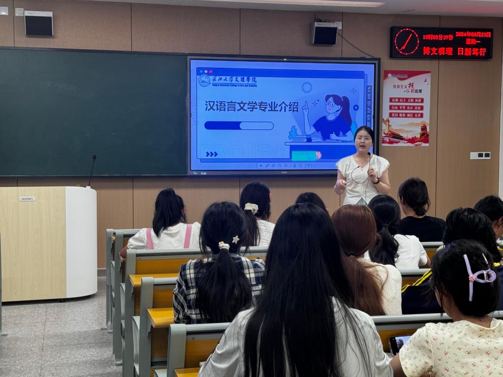 专业介绍会上,班主任老师们从专业建设、开设课程、学习方法、发展趋势等方面,对中国语言文学类和新闻传播学专业做了详细介绍,让新生深刻认识到各专业的重要性和广阔的发展空间。随后,班主任老师们结合优秀员工的事迹,深入浅出地分析了各专业的就业前景和个人职业路径规划。最后,班主任老师们鼓励新生养成良好学习习惯,增强学习主动性,积极参加各类学科竞赛,不断提升自身的综合素质,不负韶华时光。