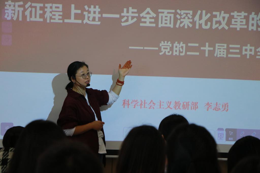 教工支部书记刘磊带领全体教职工集中学习了《求是》杂志发表的习近平总书记重要文章《大力弘扬伟大爱国主义精神,把强国建设、民族复兴伟业不断推向前进》,以及习近平总书记在党的二十届三中全会第二次全体会议上的讲话等重要文件精神。