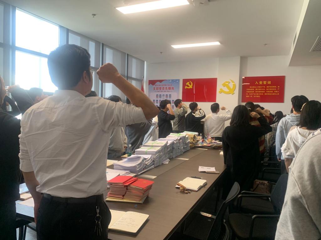 首先,员工支部全体党员在支部书记李启文同志的带领下重温入党誓词,随后全体党员交纳本月党费。