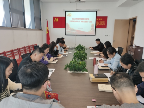 政治学习结束后,教工党支部举行了10月份支部主题党日活动。全体党员重温入党誓词,交纳本月党费,集体学习了《中国共产党章程》第九章《党组》,习近平总书记2023年7月和9月分别在《求是》杂志第13期发表的文章《努力成长为对党和人民忠诚可靠、堪当时代重任的栋梁之才》和第18期文章《扎实推动教育强国建设》,2023年9月9日习近平总书记致信出席全国优秀教师代表座谈会的重要指示精神,《习近平新时代中国特色社会主义思想专题摘编》,《新时代高校教师职业行为十项准则》等文件。党员们针对 “如何将教育家精神作为共同价值追求,切实提高为党育人、为国育才的责任感和使命感。”的议题进行了交流和讨论。