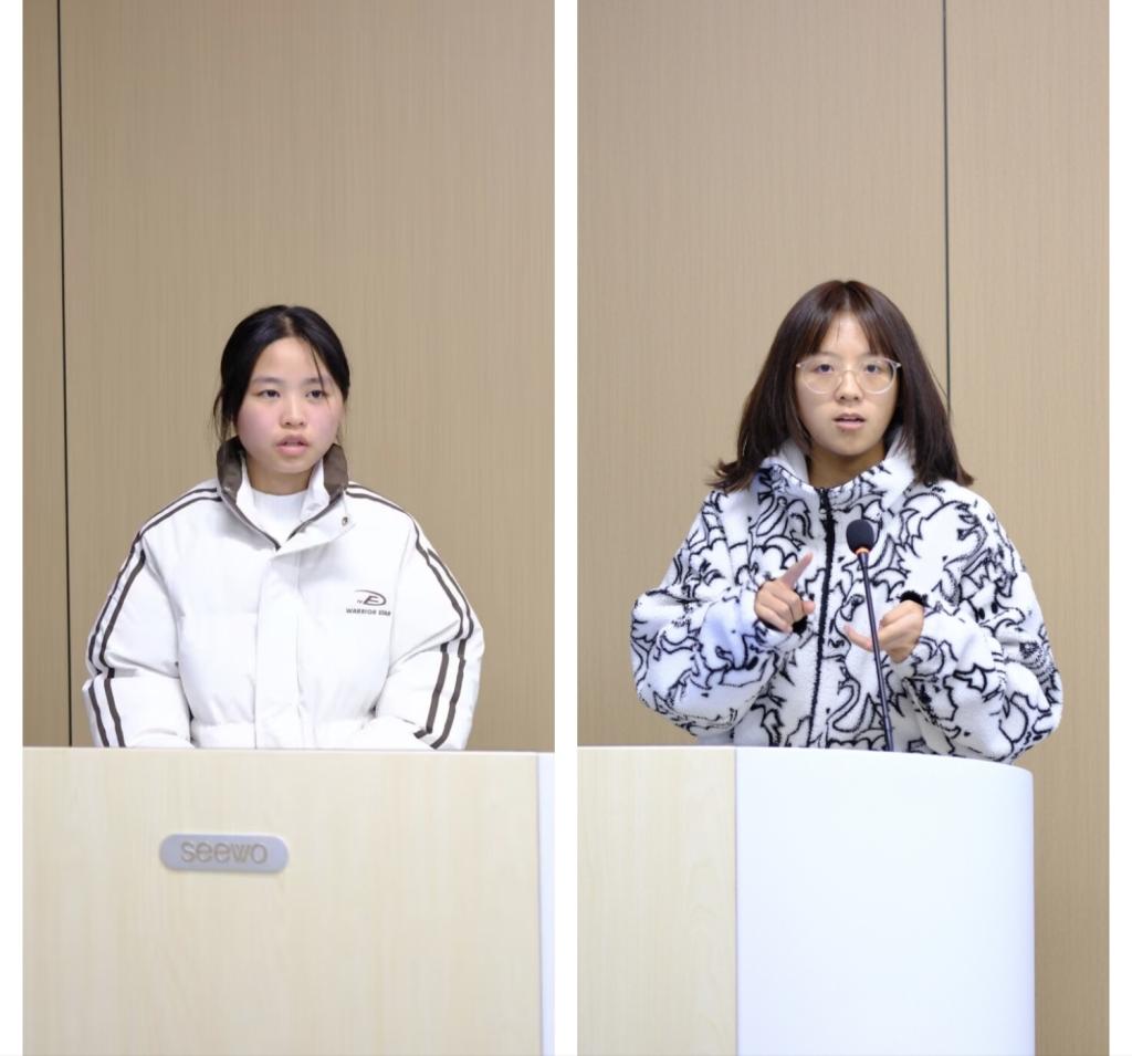 然后由两位大三的优秀学姐分享备考心得。她们从考试的分值分布入手,针对考试中的作文、听力、阅读、翻译这四大题型,分享了自己的学习方法、答题技巧,以及如何把握做题的时间和顺序,为同学们提供了切实可行的方法。
