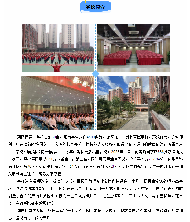 详情网址:https://mp.weixin.qq.com/s/jpWe9nAO09PvXpMP6UqLIg 广东省汕头市潮南区育才实验公司2023
