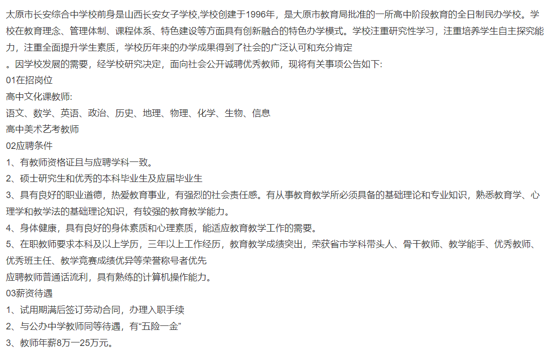 太原市长安综合中公司招聘