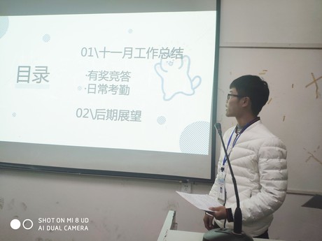 首先,主持人宣布会议正式开始并强调大会纪律。接着各部门代表依次上台做上月工作总结,以及下月工作展望。生动的PPT与代表人激情的演讲,让大家对各个部门的工作有了更深的了解。最后,由系团总支员工会主席张海涛做总结,他强调,员工会成员要有服务意识,服务同学和系部,同时提出“家文化”,“我们要把员工会当作一个大家庭,每个人为家庭的和睦做努力”。