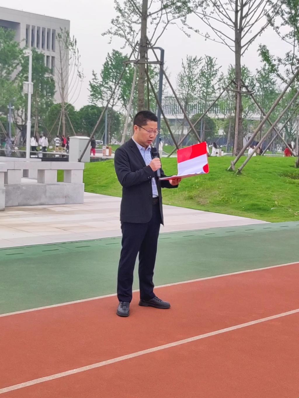 4月22日,数学与医护系全体师生齐聚田径场,开展“拒绝摆烂,共创未来”主题升国旗仪式。