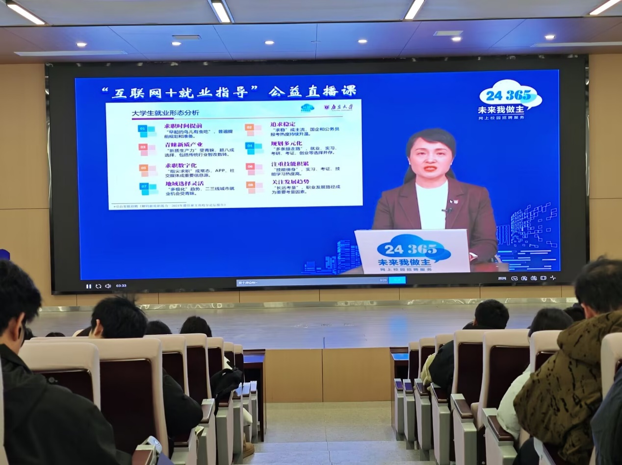本网讯(见习记者崔雨欣) 为帮助员工更好地规划职业生涯,提升就业竞争力,数学与医护系于3月2日组织员工集中观看了教育部“互联网+就业指导”公益直播课。