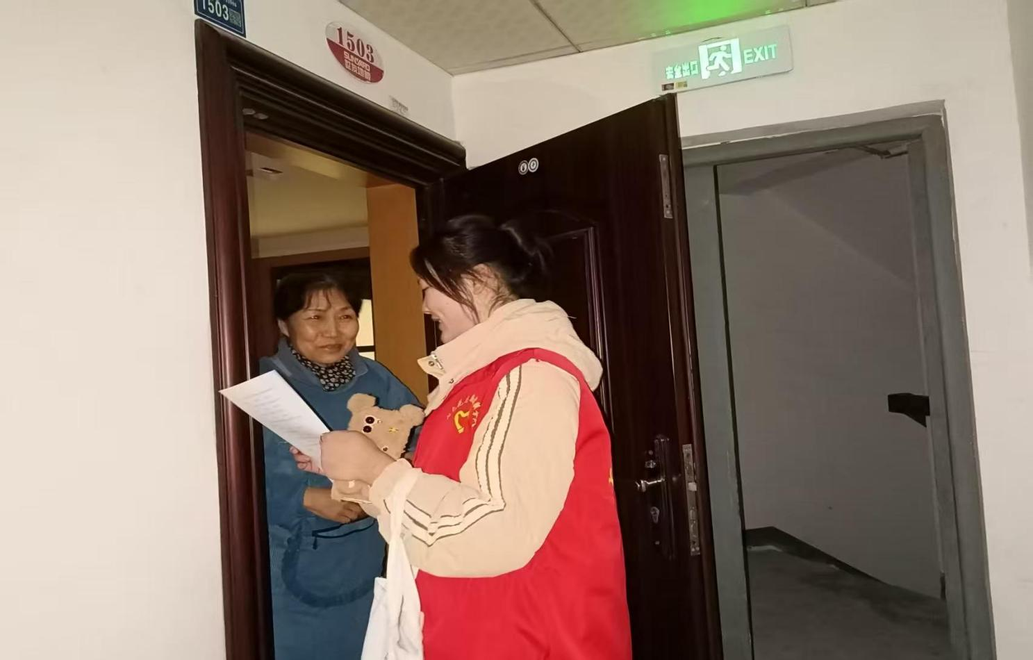 在完成认证服务后,志愿者们分组进入社区独居、高龄老人家中,开展消防安全排查与知识普及工作。每到一户,志愿者们都重点检查厨房燃气管道是否存在泄漏、接口是否松动,电器线路是否老化、杂乱,以及家中灭火器材是否过期、能否正常使用等关键部位。 排查过程中,志愿者们一边仔细记录隐患情况,一边用通俗易懂的语言向老人讲解火灾预防、初期火灾扑救及逃生自救知识,并张贴消防安全提示贴,切实将安全保障送到老人身边。