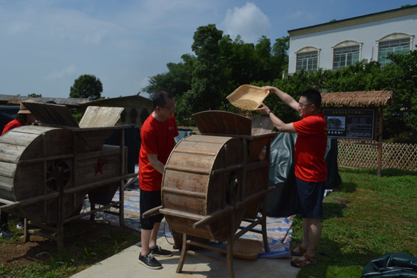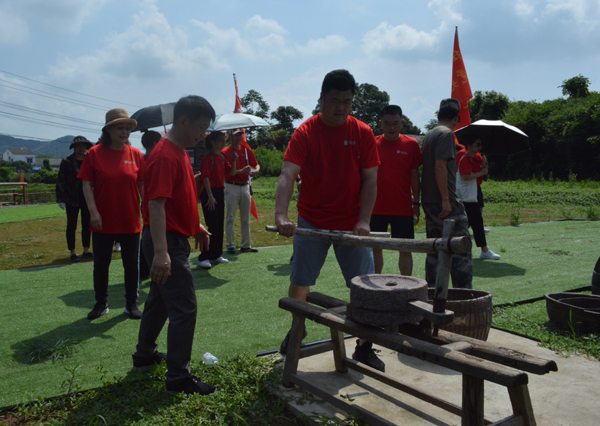 21日,全体人员整理衣装重走红军小路、重现红军练兵、重演雄师渡江,体验南泥湾大生产,不少教师现场学习踩水车、编草鞋、推石磨、摇风车、挑军粮、唱红歌……近距离缅怀革命先烈,感受战火纷飞的时代。
