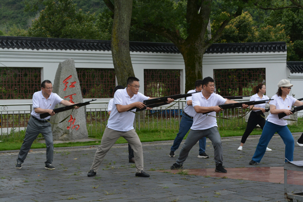 22日,大家来到红军树革命烈士纪念园,三棵葱翠的黄芯古树有一个神圣的名字——“红军树”,它们见证了湘鄂西革命根据地的历史风云,也是当地革命烈士奋起抗争的见证者。全体教师聆听了红军树的历史故事,并在红军树下练兵,进行刺杀操训练,向老一辈革命英雄致敬。