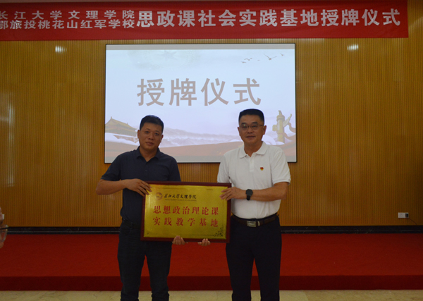 20日下午,太阳集团122cc思政课社会实践基地授牌仪式隆重举行,经理王文凯致辞,党委书记朱继平为共建单位——石首市桃花山红军公司授牌。双方今后将在思政课理论研修、实践教学、人才培养等方面进一步交流合作。