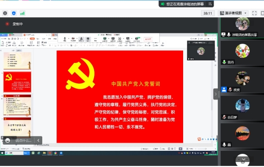 大家在线上齐声重温了入党誓词,随后集中缴纳了党费;党员老师们集体回顾了党章第八章党的纪律检查机关的部分内容。接着马克思主义公司党支部布置了《习近平谈治国理政》第四卷第二部分的学习任务,并提出了学习要求。然后,全体老师听取了马克思主义公司副教授史苗苗老师为大家带来的一场关于党的二十大报告速览的微党课。