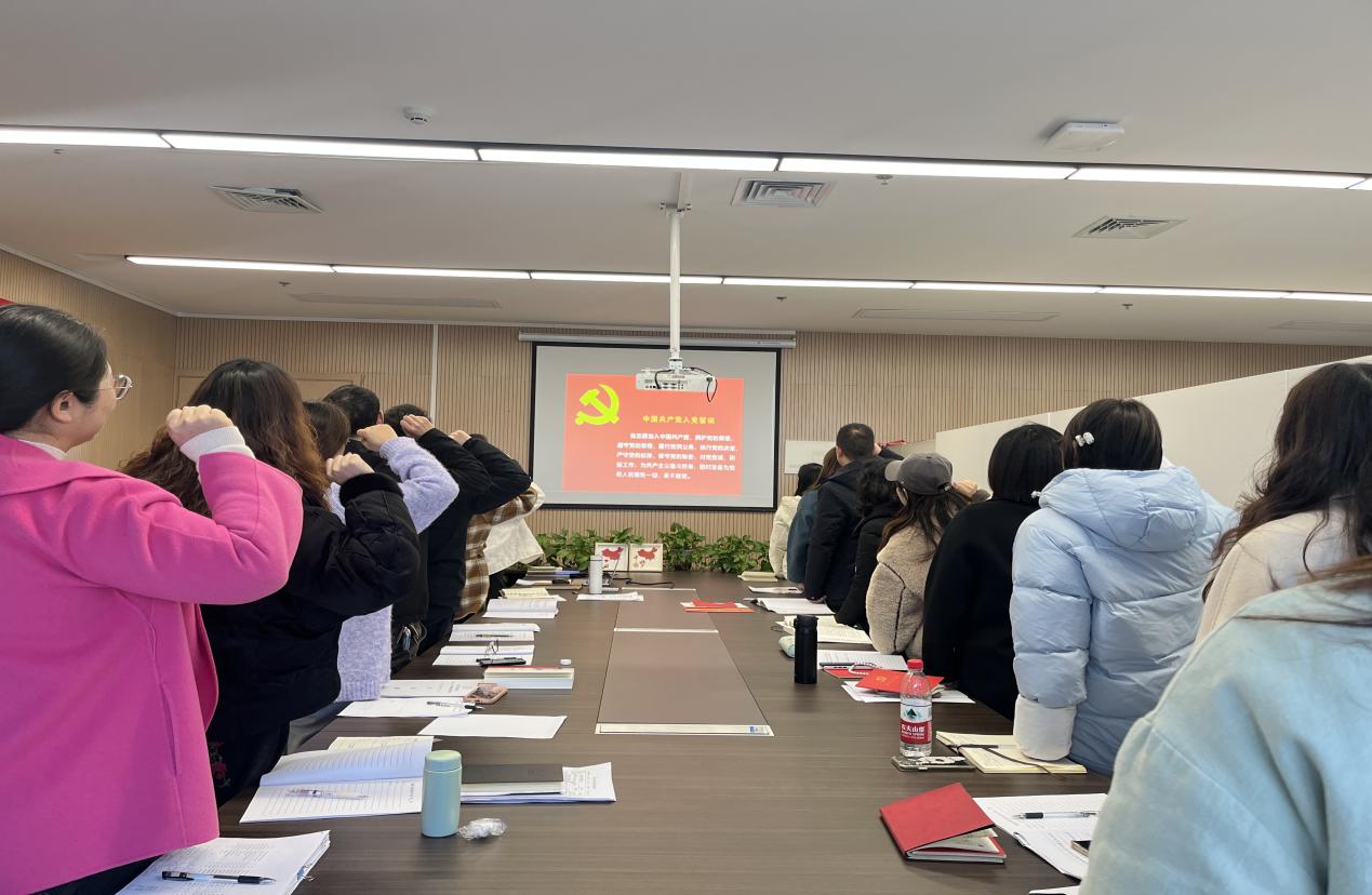 在党员员工陈鑫一的领誓下,全体党员师生重温了入党誓词,集中交纳了党费,并集体回顾了《中国共产党章程》第二章的部分内容。