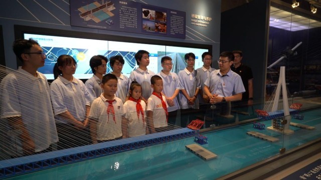 哈尔滨工业大学交通公司教师李顺龙在中国桥梁博物馆进行课程思政与桥梁科普。新华社发(张润 摄)