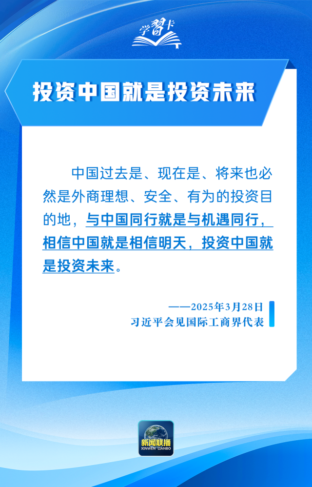 习近平主席强调,中国是有利于外资企业投资兴业的一方沃土,将为外资企业来华贸易投资提供便利,依法保护外资企业合法权益。一起学习↓