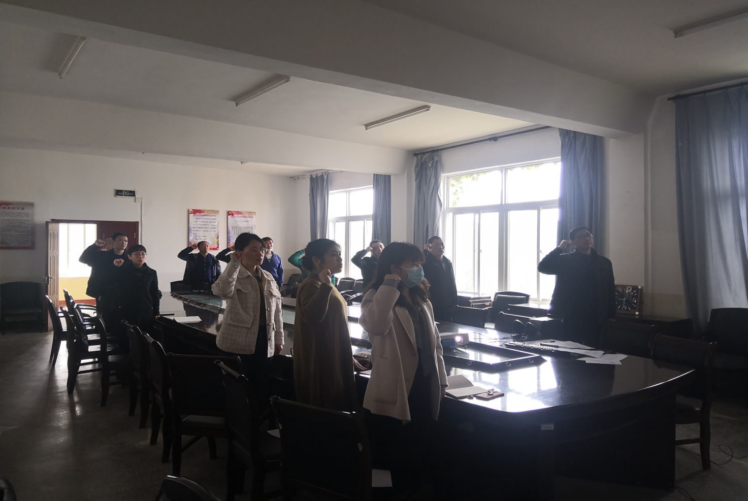 随后,党员老师开展4月支部主题党日活动。让华带领全体党员重温入党誓词,然后,党员老师们一起学习党章第七章《党的纪律》内容,并学习了党员不得信仰宗教和践行总体国家安全观等内容。最后,大家围绕如何把支部建成为“党员之家”展开了讨