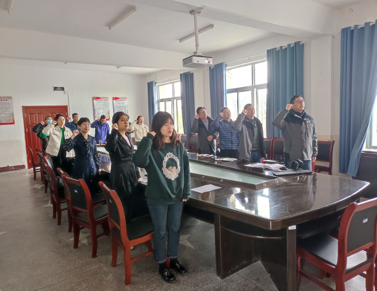 随后,党员老师开展3月支部主题党日活动。让华带领全体党员重温入党誓词,党员老师们一起学习学习党章第三章(党的中央组织)部分内容和《中国共产党第十九届中央纪律检查委员会第六次全体会议公报》,引导和激励广大党员老师在新学期立足岗位,奋发有为。