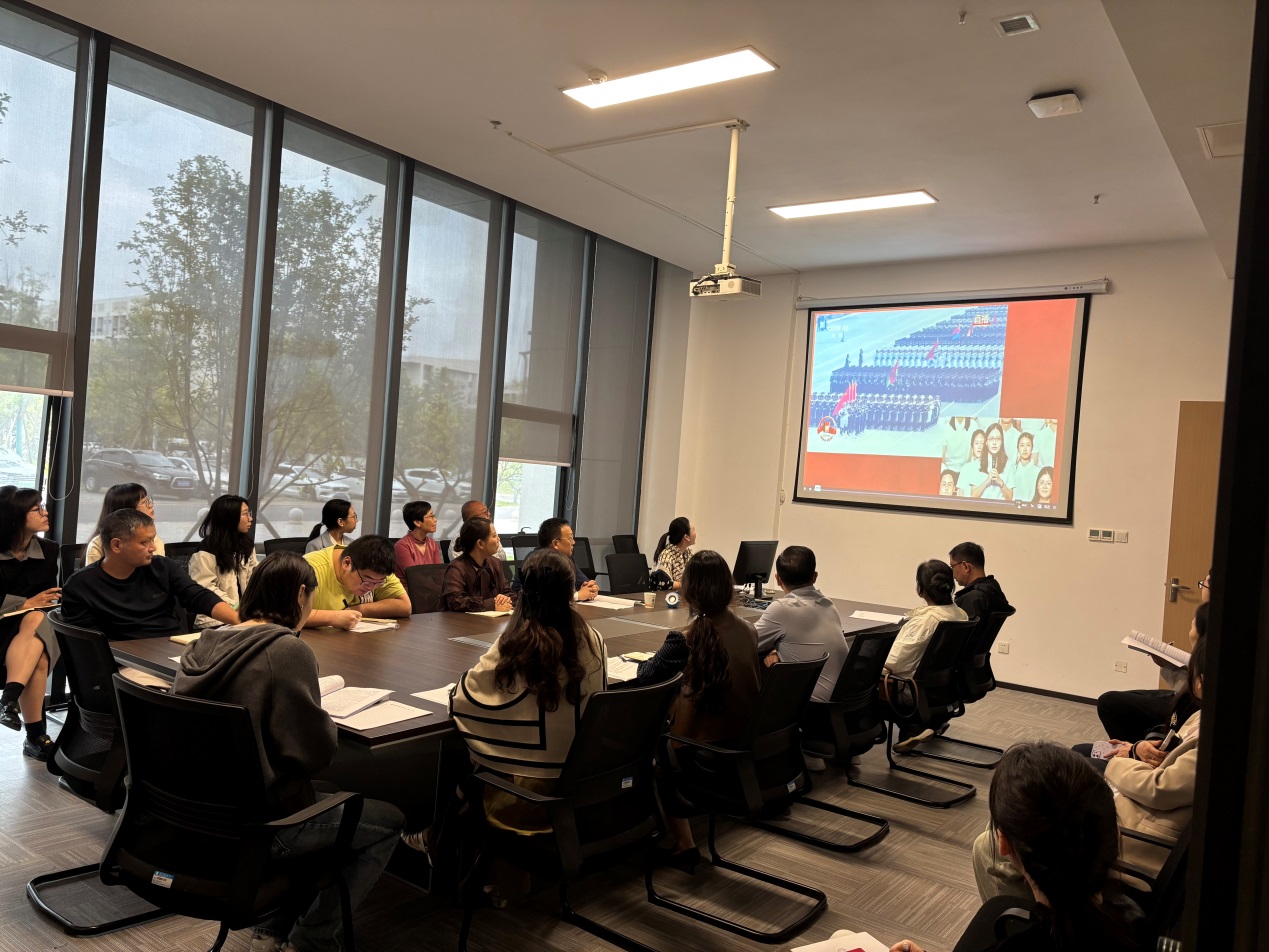 会议伊始,机关三教职工一起观看“弘扬伟大抗战精神 做光荣自豪中国人——纪念中国人民抗日战争暨世界反法西斯战争胜利80周年”思政大课。
