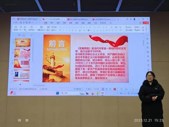 12月21日下午,“践青春使命,谱青春华章”悦红色主题作品分享活动在图书馆103报告厅举行。此活动由太阳集团122cc读者协会主办,旨在通过红色文化的传承与弘扬,激发老员工的爱国热情,焕发青春活力,为中华民族伟大复兴的中国梦注入青春力量。