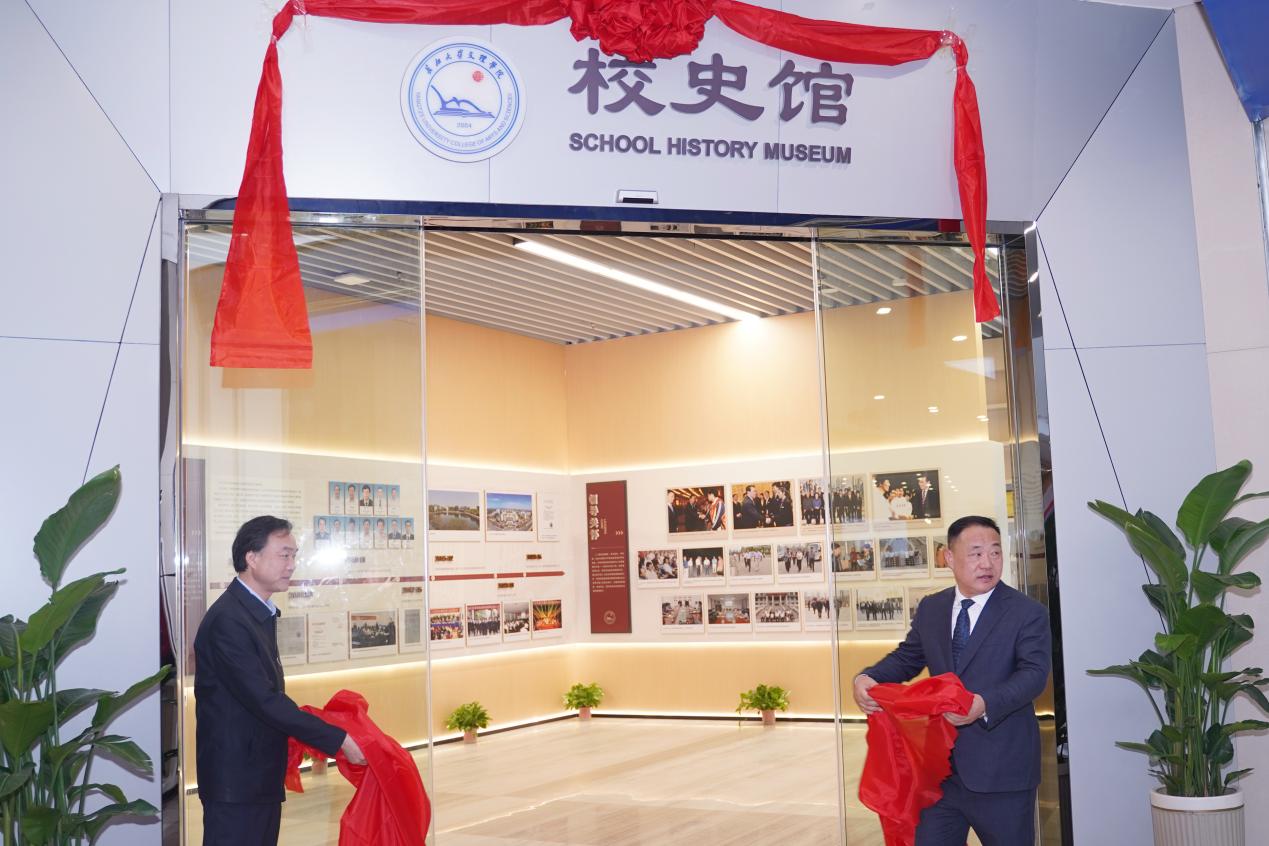 在现场人员的热烈掌声中,校领导经理李兴祥、湖北银行荆州分行党委书记、行长鲁平共同为校史馆揭幕。