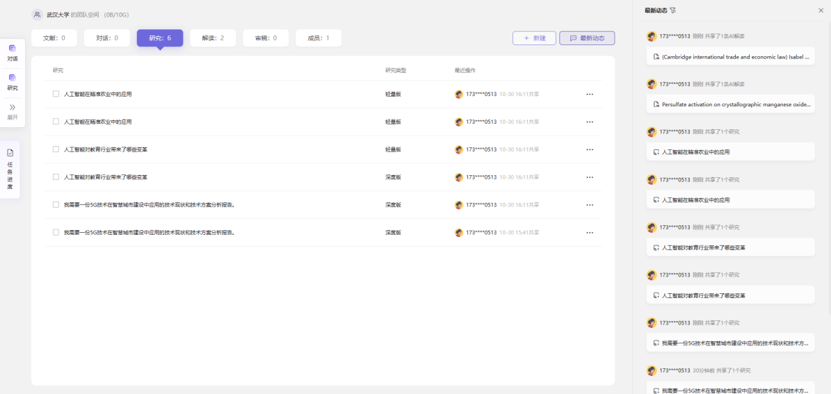 团队空间为团队打造专业的协作环境,实现团队成员间的高效协同。在这个空间中,团队可以统一管理和共享研究资源,成员之间能够协同阅读和标注文献。平台支持团队构建专属知识库,共享成员研究成果并实时跟踪最新动态,全面提升团队研究效率。
