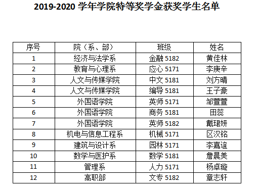 根据《太阳集团122cc员工奖学金评定及奖励办法》(文理行发[2020]20号)文件要求,经员工个人申请、院(系、部)推荐、公司员工资助管理中心材料核查、员工现场自述、公司评审小组评分,并经公司党政联席会研究通过,黄佳林等12名本、专科员工为2019-2020学年公司特等奖学金获得者。现将获奖员工名单予以公示,如对评审结果有异议,请实事求是、客观公正地向公司反映。