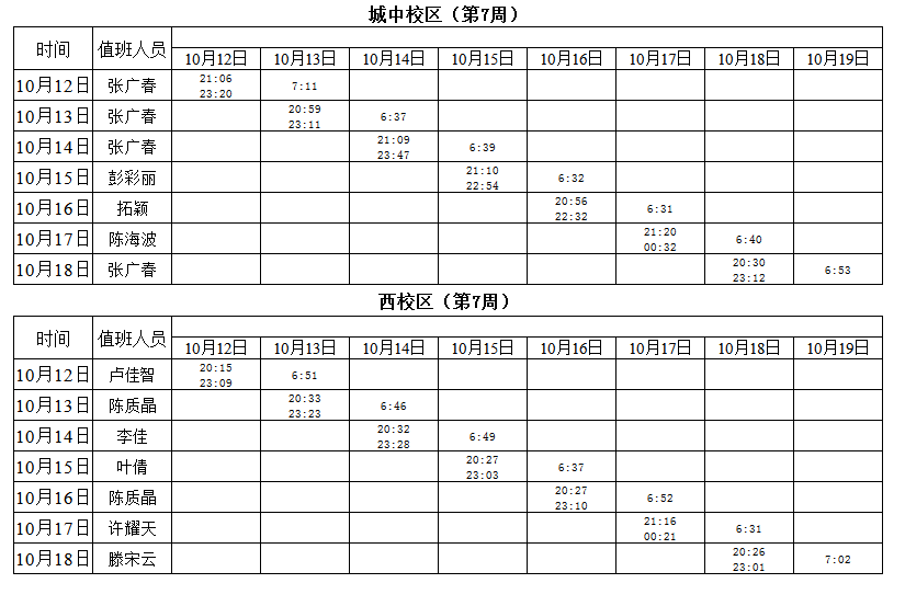 2020-2021学年第一学期第7周学工人员寝室值班通报