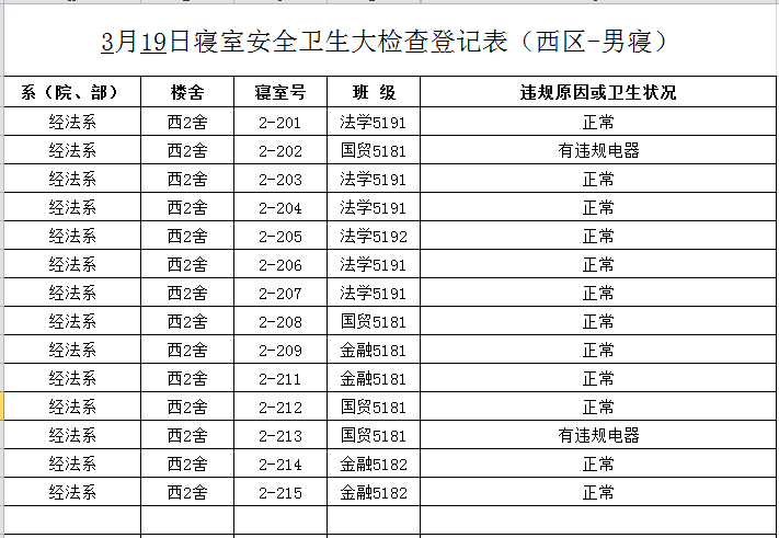 2020-2021学年第二学期第3周寝室检查结果通报