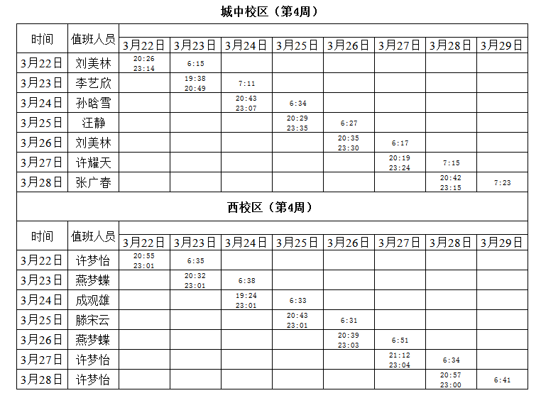 2020-2021学年第二学期第4周学工人员寝室值班通报