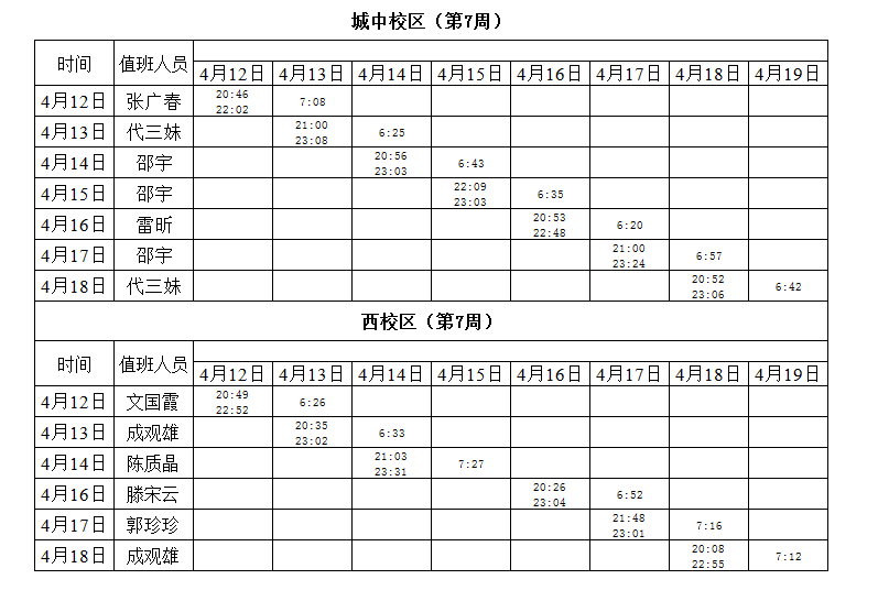 2020-2021学年第二学期第7周学工人员寝室值班通报