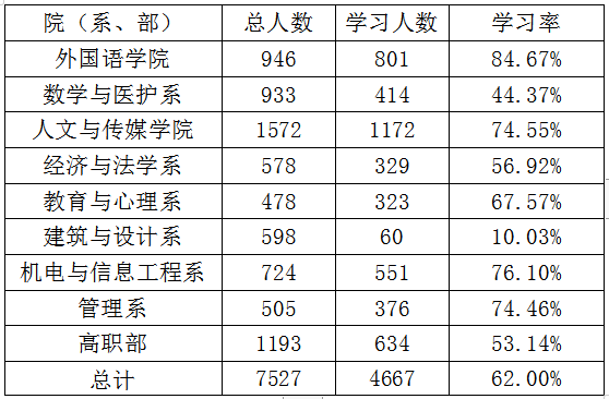 太阳集团122cc十一季第三期青年大学习各院(系、部)学习情况公示