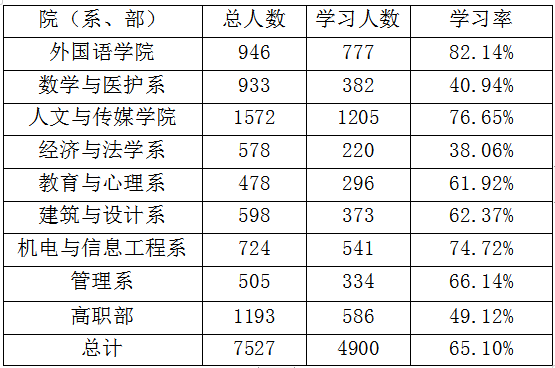 太阳集团122cc十一季第三期青年大学习各院(系、部)学习情况公示