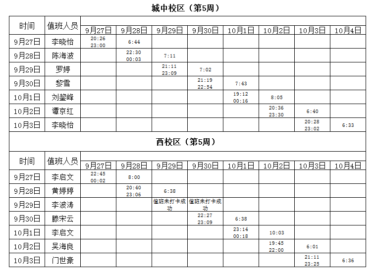 2021-2022学年第1学期第5-6周学工人员寝室值班通报