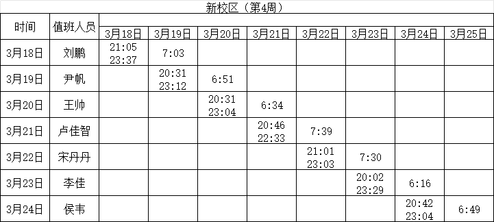 2023-2024学年第二学期第4-6周学工人员寝室值班通报