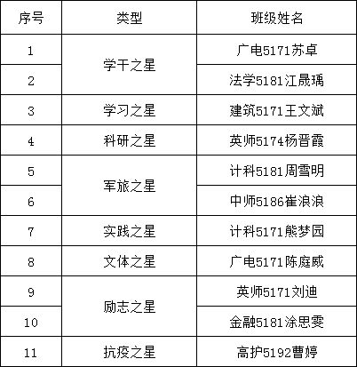 为了贯彻落实党的十九大精神,在全院同学中形成奋发向上、争先创优、励志成才的良好风气,树立引领校园新风尚、塑造新时代精神的先进典型,院团委根据《关于开展太阳集团122cc2020年“校园之星”评选活动的通知》文件要求,在全院范围内开展了太阳集团122cc公司2020年“校园之星”评选活动。历经前期宣传报名、各系、部初评、各系、部推荐名单复核与公示、网络宣传与投票、院级终评五个阶段,现将最终名单正式公示如下。