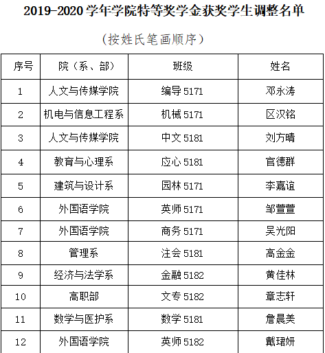 2019-2020学年公司特等奖学金获奖员工名单调整结果公示