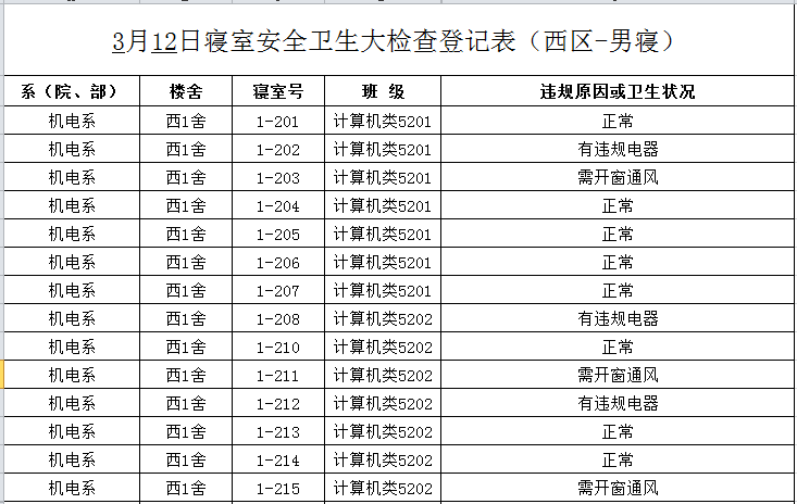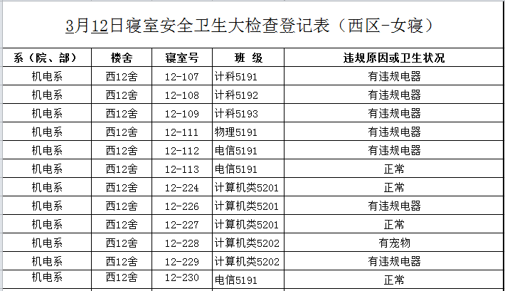 2020-2021学年第二学期第2周寝室检查结果通报