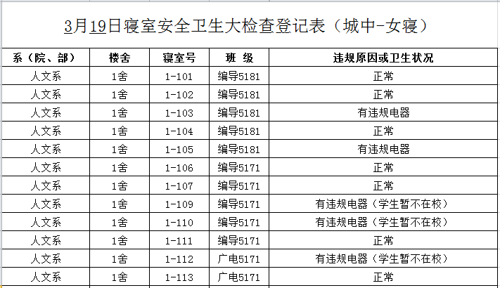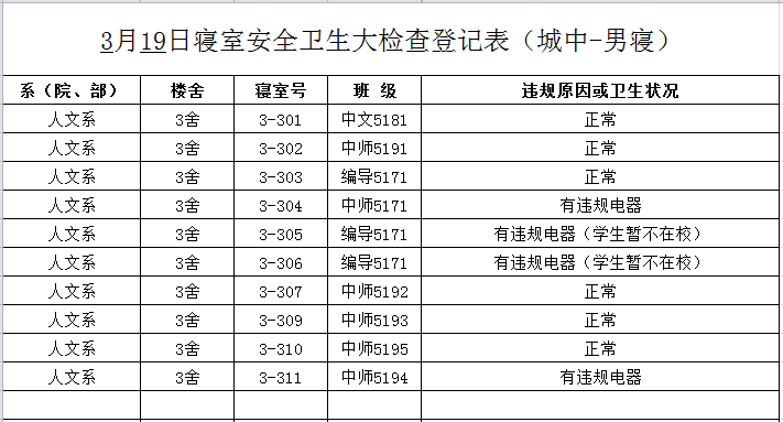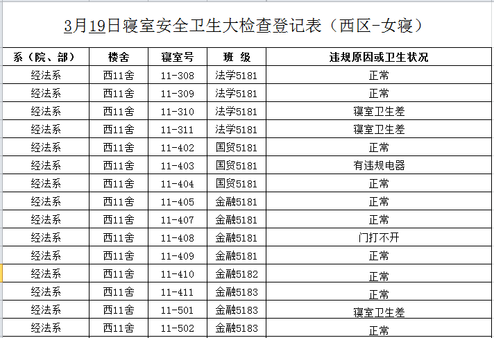 2020-2021学年第二学期第3周寝室检查结果通报