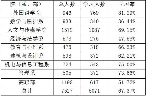 太阳集团122cc十一季第三期青年大学习各院(系、部)学习情况公示
