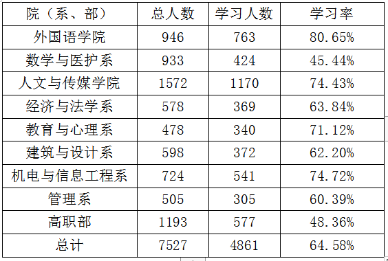 太阳集团122cc十一季第八期青年大学习各院(系、部)学习情况公示