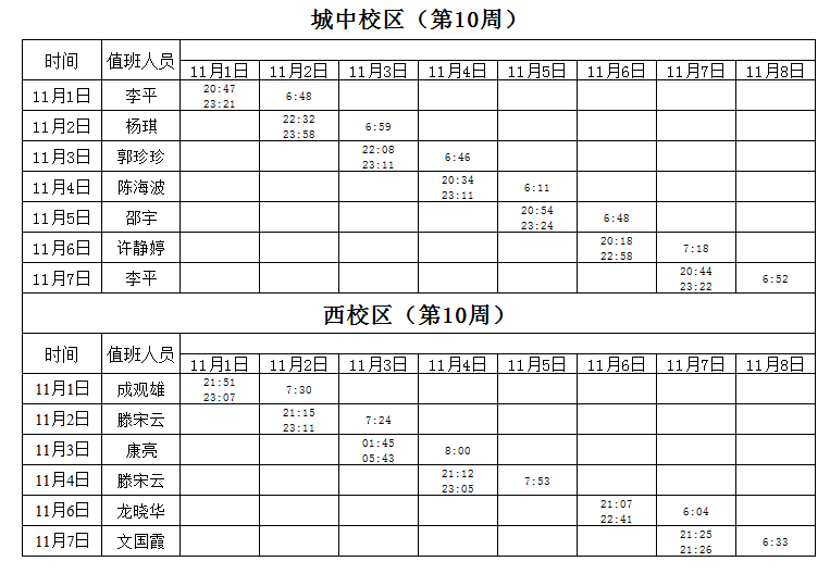 2021-2022学年第1学期第10周学工人员寝室值班通报