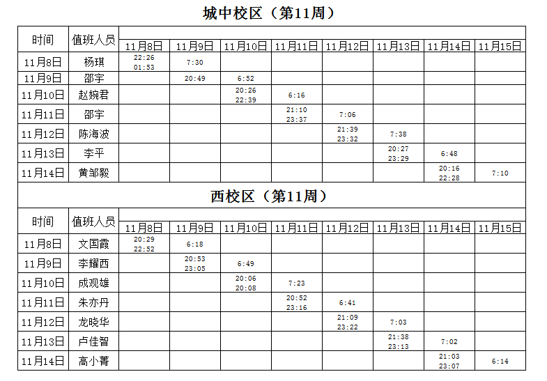 2021-2022学年第1学期第11周学工人员寝室值班通报