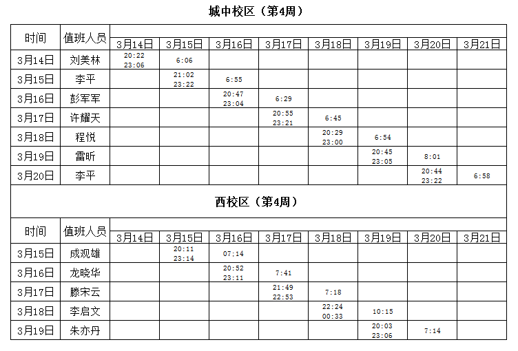 2021-2022学年第2学期第4周学工人员寝室值班通报