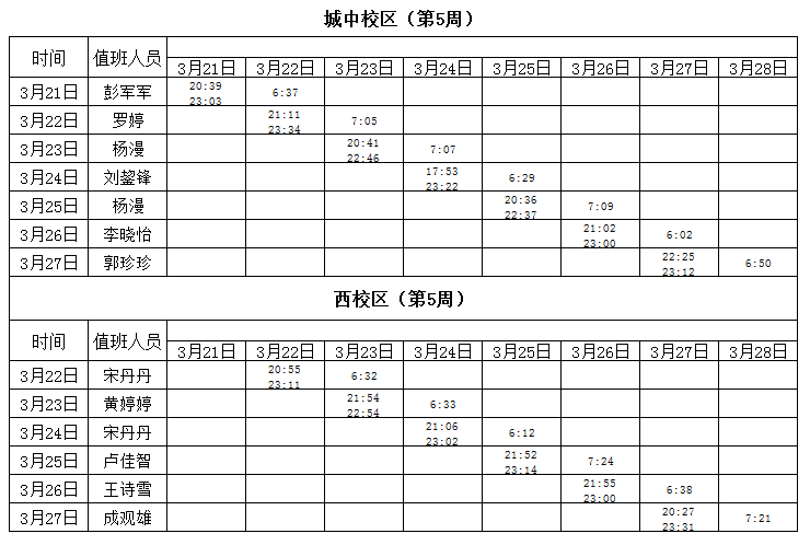 2021-2022学年第2学期第5周学工人员寝室值班通报