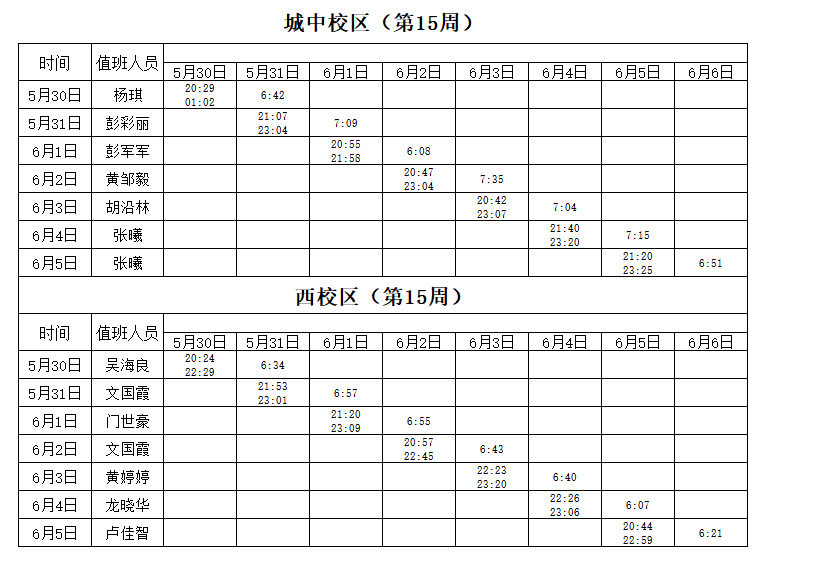 2021-2022学年第2学期第15周学工人员寝室值班通报
