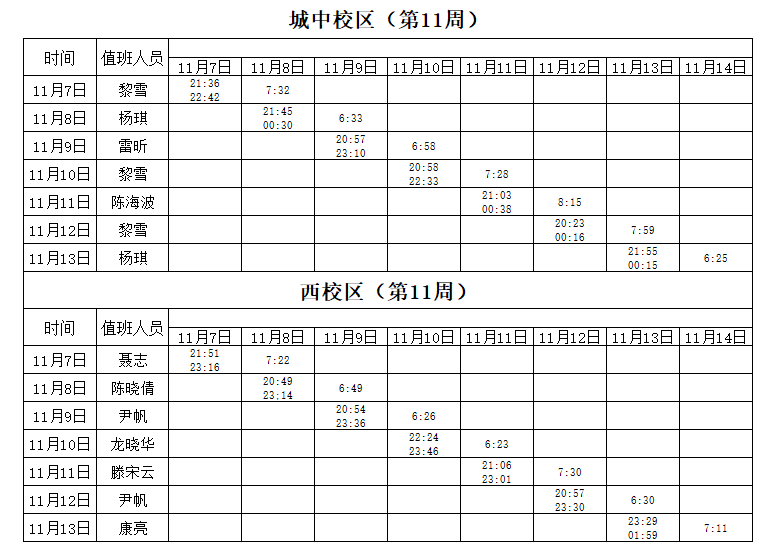 2022-2023学年第1学期第11-12周学工人员寝室值班通报